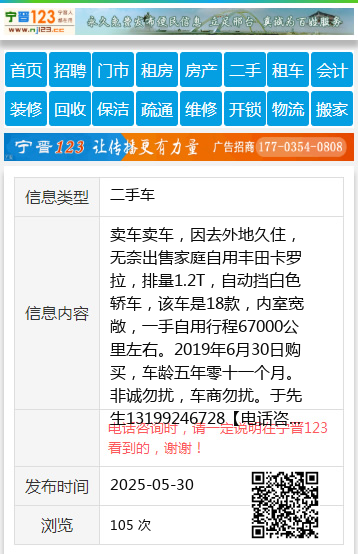 卖车卖车,因去外地久住,无奈出售家庭自用丰田卡罗拉,排量1.2T,自动挡白色轿车,该车是18款,内室宽敞,一手自用行程67000公里左右。2019年6月30日购买,车龄五年零十一个月。非诚勿扰,车商勿扰。于先生13199246728 【电话咨询时,请一定说明在七台河信息网看到的,谢谢!】 |