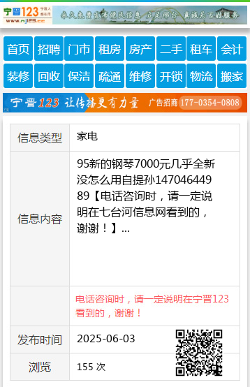 【电话咨询时,请一定说明在七台河信息网看到的,谢谢!】