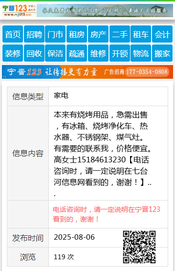 本来有烧烤用品,急需出售,有冰箱、烧烤净化车、热水器、不锈钢架、煤气灶。有需要的联系我,价格便宜。高女士15184613230 【电话咨询时,请一定说明在七台河信息网看到的,谢谢!】 |