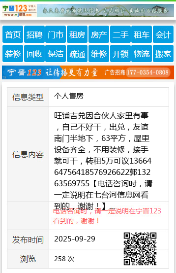 旺铺吉兑因合伙人家里有事,自己不好干,出兑,友谊南门半地下,63平方,屋里设备齐全,不用装修,接手就可干,转租5万可议1366464756418576926622郭13263569755 【电话咨询时,请一定说明在七台河信息网看到的,谢谢!】 |