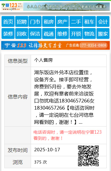 湖东饭店外兑本店位置佳,设备齐全。接手即可经营,房费到5月份,要去外地发展,欢迎有意者前来洽谈饭口勿扰电话18304657266女18304657266 【电话咨询时,请一定说明在七台河信息网看到的,谢谢!】 |