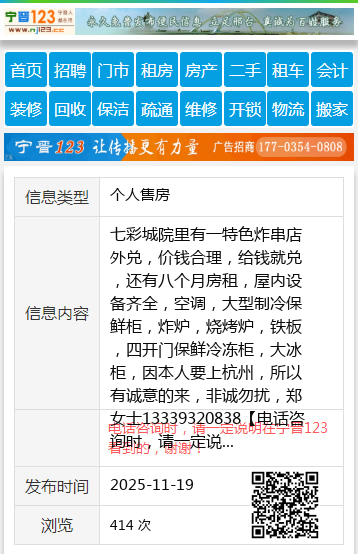 七彩城院里有一特色炸串店外兑,价钱合理,给钱就兑,还有八个月房租,屋内设备齐全,空调,大型制冷保鲜柜,炸炉,烧烤炉,铁板,四开门保鲜冷冻柜,大冰柜,因本人要上杭州,所以有诚意的来,非诚勿扰,郑女士13339320838 【电话咨询时,请一定说明在七台河信息网看到的,谢谢!】 |