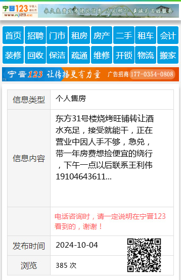 东方31号楼烧烤旺铺转让酒水充足,接受就能干,正在营业中因人手不够,急兑,带一年房费想捡便宜的绕行,下午一点以后联系王利伟19104643611 【电话咨询时,请一定说明在七台河信息网看到的,谢谢!】 |