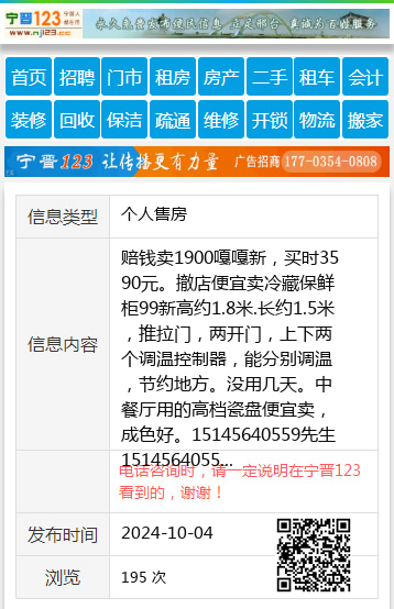 赔钱卖1900嘎嘎新,买时3590元。撤店便宜卖冷藏保鲜柜99新高约1.8米.长约1.5米,推拉门,两开门,上下两个调温控制器,能分别调温,节约地方。没用几天。中餐厅用的高档瓷盘便宜卖,成色好。15145640559先生15145640559 【电话咨询时,请一定说明在七台河信息网看到的,谢谢!】 |