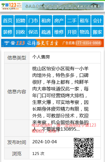 桃山区怡安小区现有一小羊肉馆外兑,特色多多,口碑很好,羊身上都有,纯鲜羊肉大串等味道仅此一家,每年门口可经营烧烤大排档,生意火爆,可实地考察,因长期身体疲劳精力有限,现外兑,可教部分技术,欢迎来考察,机会留给有准备的人,不要犹豫13089536644赵女士13846424581 【电话咨询时,请一定说明在七台河信息网看到的,谢谢!】 |