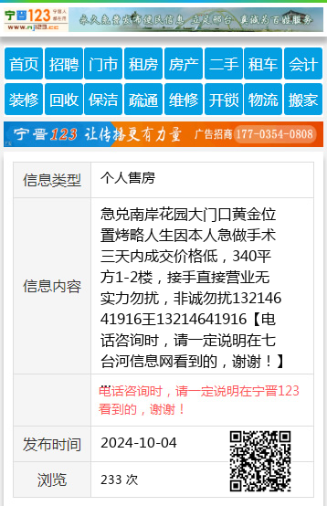 急兑南岸花园大门口黄金位置烤略人生因本人急做手术三天内成交价格低,340平方1-2楼,接手直接营业无实力勿扰,非诚勿扰13214641916王13214641916 【电话咨询时,请一定说明在七台河信息网看到的,谢谢!】 |