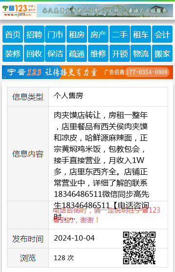 肉夹馍店转让,房租一整年,店里餐品有西关侯肉夹馍和凉皮,哈鲜源麻辣面,正宗黄焖鸡米饭,包教包会,接手直接营业,月收入1W多,店里东西齐全。店铺正常营业中,详细了解的联系18346486511微信同步高先生18346486511 【电话咨询时,请一定说明在七台河信息网看到的,谢谢!】 |