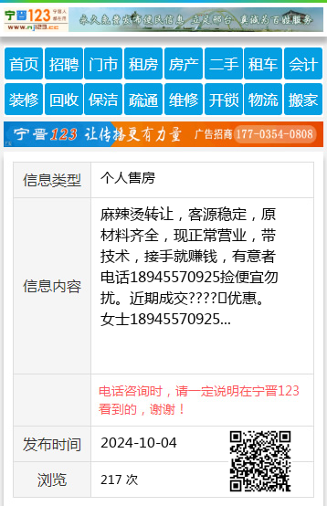 麻辣烫转让,客源稳定,原材料齐全,现正常营业,带技术,接手就赚钱,有意者电话18945570925捡便宜勿扰。近期成交????️优惠。女士18945570925 【电话咨询时,请一定说明在七台河信息网看到的,谢谢!】 |