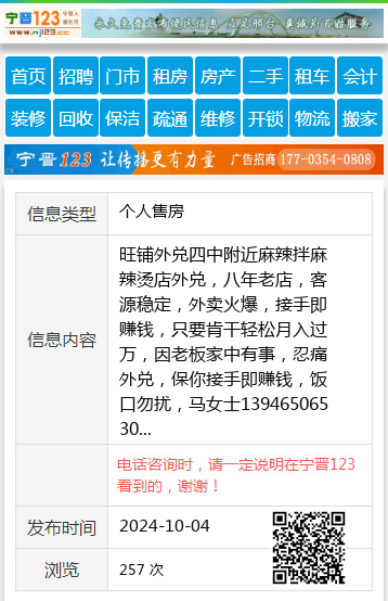 旺铺外兑四中附近麻辣拌麻辣烫店外兑,八年老店,客源稳定,外卖火爆,接手即赚钱,只要肯干轻松月入过万,因老板家中有事,忍痛外兑,保你接手即赚钱,饭口勿扰,马女士13946506530 【电话咨询时,请一定说明在七台河信息网看到的,谢谢!】 |