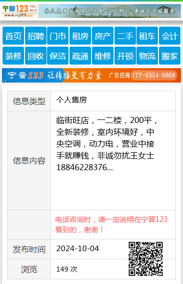 临街旺店,一二楼,200平,全新装修,室内环境好,中央空调,动力电,营业中接手就赚钱,非诚勿扰王女士18846228376 【电话咨询时,请一定说明在七台河信息网看到的,谢谢!】 |