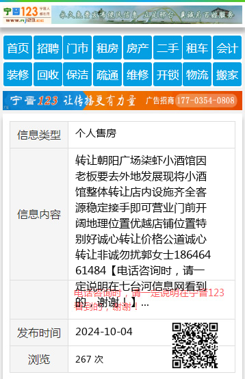 转让朝阳广场柒虾小酒馆因老板要去外地发展现将小酒馆整体转让店内设施齐全客源稳定接手即可营业门前开阔地理位置优越店铺位置特别好诚心转让价格公道诚心转让非诚勿扰郭女士18646461484 【电话咨询时,请一定说明在七台河信息网看到的,谢谢!】 |
