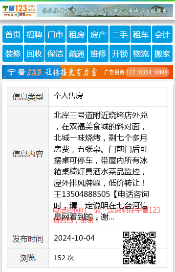 北岸三号道附近烧烤店外兑,在双福美食城的斜对面,北城一味烧烤,剩七个多月房费,五张桌。门前门后可摆桌可停车,带屋内所有冰箱桌椅灯具酒水菜品监控,屋外排风牌匾,低价转让!王13504888505 【电话咨询时,请一定说明在七台河信息网看到的,谢谢!】 |