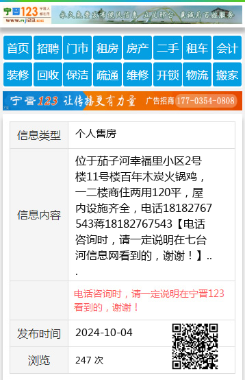 位于茄子河幸福里小区2号楼11号楼百年木炭火锅鸡,一二楼商住两用120平,屋内设施齐全,电话18182767543蒋18182767543 【电话咨询时,请一定说明在七台河信息网看到的,谢谢!】 |