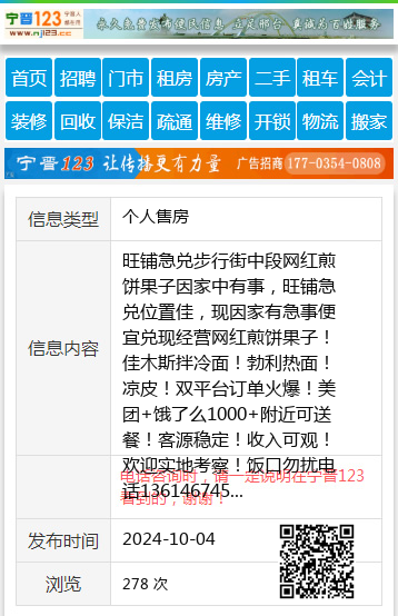 旺铺急兑步行街中段网红煎饼果子因家中有事,旺铺急兑位置佳,现因家有急事便宜兑现经营网红煎饼果子!佳木斯拌冷面!勃利热面!凉皮!双平台订单火爆!美团+饿了么1000+附近可送餐!客源稳定!收入可观!欢迎实地考察!饭口勿扰电话13614674587。可空兑也可带技术。董13614674587 【电话咨询时,请一定说明在七台河信息网看到的,谢谢!】 |