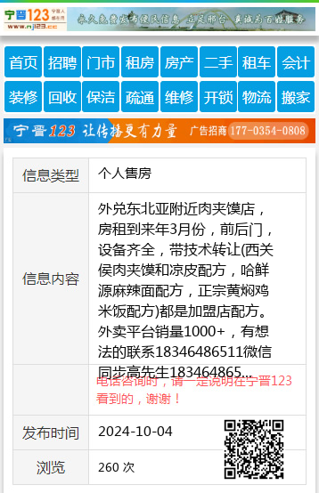 外兑东北亚附近肉夹馍店,房租到来年3月份,前后门,设备齐全,带技术转让(西关侯肉夹馍和凉皮配方,哈鲜源麻辣面配方,正宗黄焖鸡米饭配方)都是加盟店配方。外卖平台销量1000+,有想法的联系18346486511微信同步高先生18346486511 【电话咨询时,请一定说明在七台河信息网看到的,谢谢!】 |