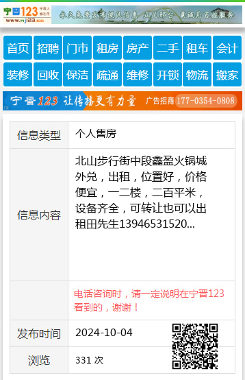 北山步行街中段鑫盈火锅城外兑,出租,位置好,价格便宜,一二楼,二百平米,设备齐全,可转让也可以出租田先生13946531520 【电话咨询时,请一定说明在七台河信息网看到的,谢谢!】 |