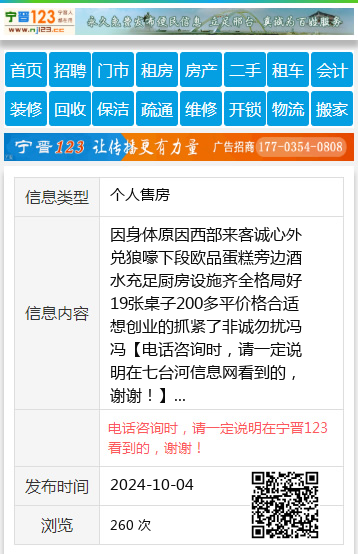 因身体原因西部来客诚心外兑狼嚎下段欧品蛋糕旁边酒水充足厨房设施齐全格局好19张桌子200多平价格合适想创业的抓紧了非诚勿扰冯冯 【电话咨询时,请一定说明在七台河信息网看到的,谢谢!】 |