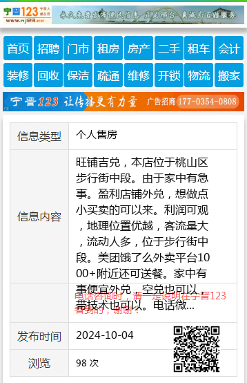 旺铺吉兑,本店位于桃山区步行街中段。由于家中有急事。盈利店铺外兑,想做点小买卖的可以来。利润可观,地理位置优越,客流量大,流动人多,位于步行街中段。美团饿了么外卖平台1000+附近还可送餐。家中有事便宜外兑,空兑也可以,带技术也可以。电话微信同号13614674587。给钱就兑,家里事很着急。董13614674587 【电话咨询时,请一定说明在七台河信息网看到的,谢谢!】 |