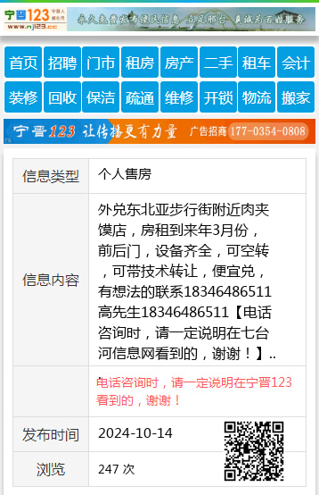 外兑东北亚步行街附近肉夹馍店,房租到来年3月份,前后门,设备齐全,可空转,可带技术转让,便宜兑,有想法的联系18346486511高先生18346486511 【电话咨询时,请一定说明在七台河信息网看到的,谢谢!】 |