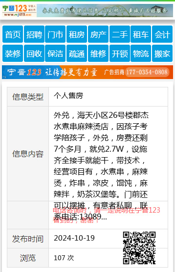 外兑,海天小区26号楼郡杰水煮串麻辣烫店,因孩子考学陪孩子,外兑,房费还剩7个多月,就兑2.7W,设施齐全接手就能干,带技术,经营项目有,水煮串,麻辣烫,炸串,凉皮,馄饨,麻辣拌,奶茶汉堡等。门前还可以摆摊,有意者私聊,联系电话:13089548677宋女士13089548677 【电话咨询时,请一定说明在七台河信息网看到的,谢谢!】 |