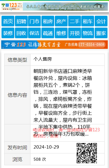 朝阳新华书店道口麻辣烫早餐店外兑,屋内设施:冰箱展柜共五个,煮锅2个,饼铛,三连池,煤气罩,冻柜,排风,桌椅板凳齐全,炸锅,现在屋内麻辣烫带早餐,早餐设施齐全,步行街上来人流量大,屋内有卫生间,半地下集中供热,110平方,房费每年3万包取暖物业,带一年房费,外兑6万。非诚勿扰。王先生18945470001 【电话咨询时,请一定说明在七台河信息网看到的,谢谢!】 |