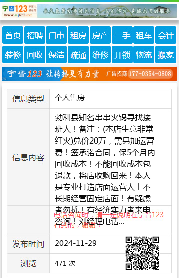 勃利县知名串串火锅寻找接班人!备注:(本店生意非常红火)兑价20万,需另加运营费!签承诺合同,保5个月内回收成本!不能回收成本包退款,将店收购回来!本人是专业打造店面运营人士不长期经营固定店面!有疑虑者勿扰!有经济实力者来电咨询!刘经理电话:186-4643-3931刘经理18646433931 【电话咨询时,请一定说明在七台河信息网看到的,谢谢!】 |