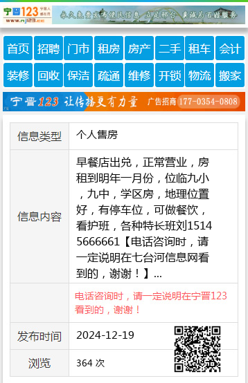 早餐店出兑,正常营业,房租到明年一月份,位临九小,九中,学区房,地理位置好,有停车位,可做餐饮,看护班,各种特长班刘15145666661 【电话咨询时,请一定说明在七台河信息网看到的,谢谢!】 |