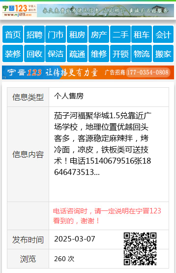 茄子河福聚华城1.5兑靠近广场学校,地理位置优越回头客多,客源稳定麻辣拌,烤冷面,凉皮,铁板类可送技术!电话15140679516张18646473513 【电话咨询时,请一定说明在七台河信息网看到的,谢谢!】 |
