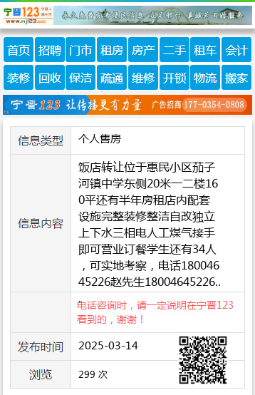 饭店转让位于惠民小区茄子河镇中学东侧20米一二楼160平还有半年房租店内配套设施完整装修整洁自改独立上下水三相电人工煤气接手即可营业订餐学生还有34人,可实地考察,电话18004645226赵先生18004645226 【电话咨询时,请一定说明在七台河信息网看到的,谢谢!】 |