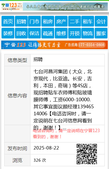 | 防骗提醒: | 七台河信息网(www.qitaihe.cc)提醒您:手工活、网络兼职、刷单,都是骗子!凡以各种名义收取费用的都是骗子!找工作是往兜里挣钱,让你往外掏钱的都是骗子!异地招聘请提高警惕,谨防诈骗! |