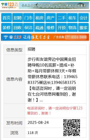 步行街友谊旁边中国黄金招聘导购10名底薪+提成+补助+每月带薪休假3天+年假带薪休息联系电话:13946583375崔店长13946583375 【电话咨询时,请一定说明在七台河信息网看到的,谢谢!】 |