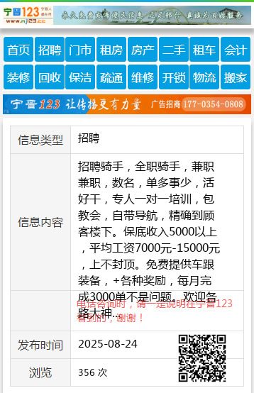 招聘骑手,全职骑手,兼职兼职,数名,单多事少,活好干,专人一对一培训,包教会,自带导航,精确到顾客楼下。保底收入5000以上,平均工资7000元-15000元,上不封顶。免费提供车跟装备,+各种奖励,每月完成3000单不是问题。欢迎各路大神骚扰电话18746402070(微信同步)单单18746402070 【电话咨询时,请一定说明在七台河信息网看到的,谢谢!】 |