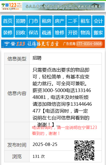 只需要点选出要求的物品即可,轻松简单,有基本应变能力就行。可全岗可兼职。薪资3000-5000电话13314648081,电话未及时接听烦请添加微信咨询李13144646477 【电话咨询时,请一定说明在七台河信息网看到的,谢谢!】 |