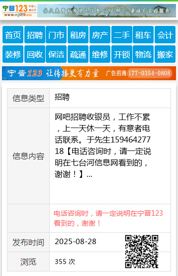 免责声明:本栏目信息由网友自行发布,七台河信息网不承担任何责任!提高警惕,谨防诈骗!做推广、做信息置顶!请加七台河信息网客服微信:cnxingtai