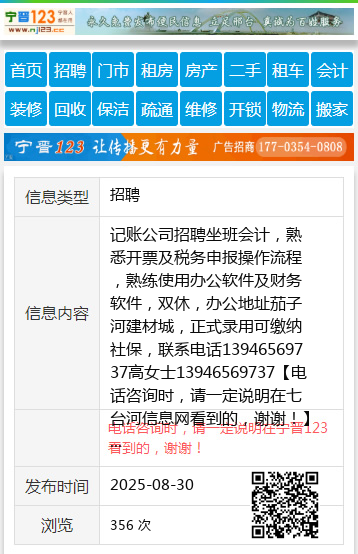 记账公司招聘坐班会计,熟悉开票及税务申报操作流程,熟练使用办公软件及财务软件,双休,办公地址茄子河建材城,正式录用可缴纳社保,联系电话13946569737高女士13946569737 【电话咨询时,请一定说明在七台河信息网看到的,谢谢!】 |