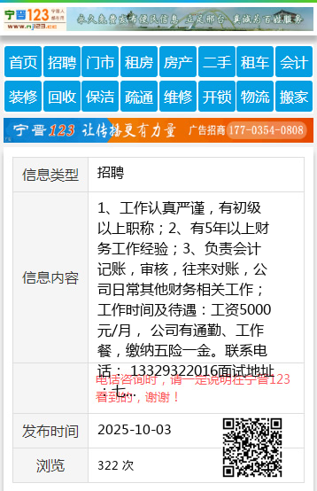 1、工作认真严谨,有初级以上职称;2、有5年以上财务工作经验;3、负责会计记账,审核,往来对账,公司日常其他财务相关工作;工作时间及待遇:工资5000元/月, 公司有通勤、工作餐,缴纳五险一金。联系电话: 13329322016面试地址:七台河市茄子河区(晟斯凯特)个人13329322016 【电话咨询时,请一定说明在七台河信息网看到的,谢谢!】 |