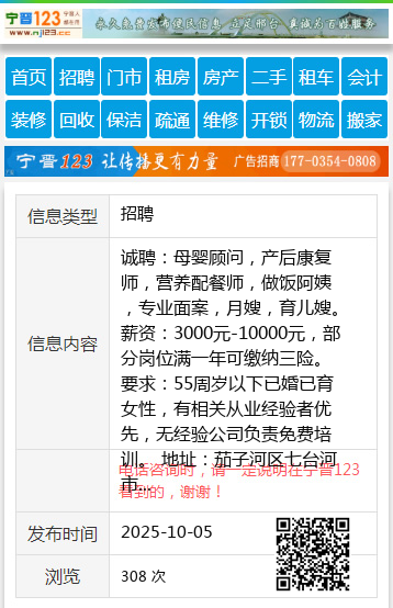 诚聘:母婴顾问,产后康复师,营养配餐师,做饭阿姨,专业面案,月嫂,育儿嫂。