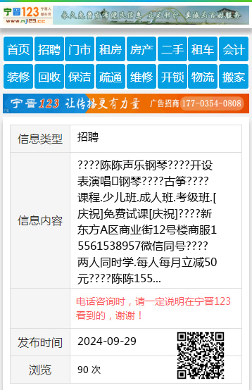 ????陈陈声乐钢琴????开设表演唱钢琴????古筝????课程.少儿班.成人班.考级班.[庆祝]免费试课[庆祝]????新东方A区商业街12号楼商服15561538957微信同号????两人同时学.每人每月立减50元????陈陈15561538957 【电话咨询时,请一定说明在七台河信息网看到的,谢谢!】 |