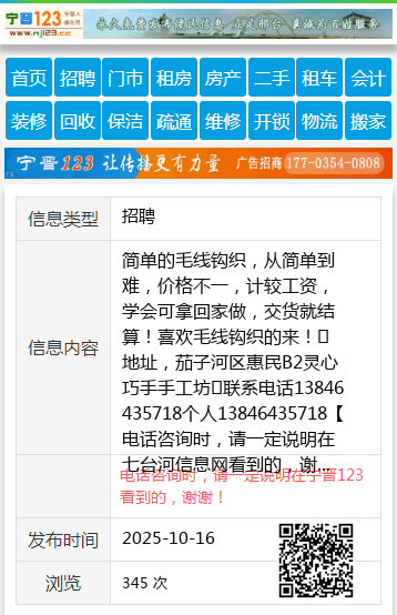 简单的毛线钩织,从简单到难,价格不一,计较工资,学会可拿回家做,交货就结算!喜欢毛线钩织的来! 地址,茄子河区惠民B2灵心巧手手工坊联系电话13846435718个人13846435718 【电话咨询时,请一定说明在七台河信息网看到的,谢谢!】 |