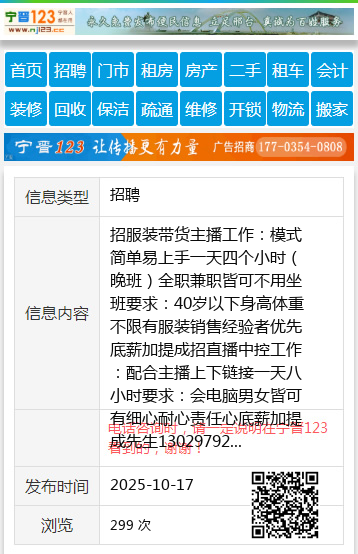 招服装带货主播工作:模式简单易上手一天四个小时(晚班)全职兼职皆可不用坐班要求:40岁以下身高体重不限有服装销售经验者优先底薪加提成招直播中控工作:配合主播上下链接一天八小时要求:会电脑男女皆可有细心耐心责任心底薪加提成先生13029792933 【电话咨询时,请一定说明在七台河信息网看到的,谢谢!】 |