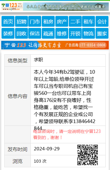 本人今年34有b2驾驶证,10年以上驾龄,给单位领导开过车可以当专职司机自己有宝骏560一台也可以带车上岗身高176没有不良嗜好,性格稳重,能吃苦,希望找一个有发展正规的企业或公司,希望领导联系李13846442844 【电话咨询时,请一定说明在七台河信息网看到的,谢谢!】 |