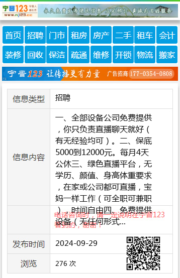 一、全部设备公司免费提供,你只负责直播聊天就好(有无经验均可)。二、保底5000到12000元。每月4天公休三、绿色直播平台,无学历、颜值、身高体重要求,在家或公司都可直播,宝妈一样工作(可全职可兼职),时间自由四、免费提供设备(无任何形式押金),滤镜,美颜,声卡,让你焕然一新。一对一(免费培训)直播技巧、化妆、才艺。不要让梦想只是梦想,让梦想从这里起航!欢迎致电。公司地址:银泉五号楼。联系电话:15946427520(微信同步)杨经理15946427520 【电话咨询时,请一定说明在七台河信息网看到的,谢谢!】 |