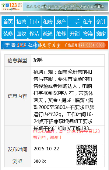 招聘正规:淘宝晚班售前和售后客服,要求有简单的销售经验或者网购达人,电脑打字40到50字左右,带薪休两天,奖金+提成+底薪+满勤2000至5800左右要求电脑运行内存32g。工作时间16-24点不招兼职和短期工要求长期干的详细加V了解18304668323人事19945956665 【电话咨询时,请一定说明在七台河信息网看到的,谢谢!】 |