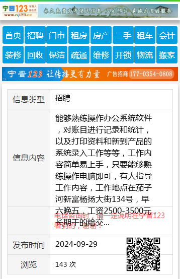 能够熟练操作办公系统软件,对账目进行记录和统计,以及打印资料和新到产品的系统录入工作等等,工作内容简单易上手,只要能够熟练操作电脑即可,有人指导工作内容,工作地点在茄子河新富杨扬大街134号,早六晚五,工资2500-3500元,长期干的给交社保,联系张经理,15046406678,微信不回复。张经理15046406678 【电话咨询时,请一定说明在七台河信息网看到的,谢谢!】 |
