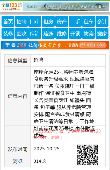 南岸花园25号楼因养老院膳食服务升级需求 现诚聘厨房师傅一名 负责院里一日三餐制作 保证餐食卫生 重点擅长各类面食烹饪 如馒头 面条 包子等 服从养老院管理安排 配合完成食材清点 厨房卫生清洁等日常 ,工作地址南岸花园25号楼 家住附近优先 工作时间 早饭6点40开饭,中午11.00开饭。晚上4.30开饭,工资3000 年龄50至55 非诚勿扰 联系电话15804643112个人15804643112 【电话咨询时,请一定说明在七台河信息网看到的,谢谢!】 |