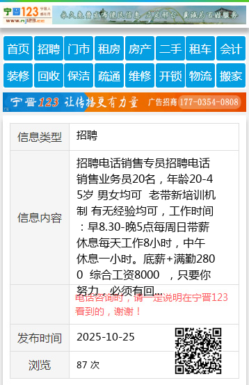 招聘电话销售专员招聘电话销售业务员20名,年龄20-45岁 男女均可 老带新培训机制 有无经验均可,工作时间:早8.30-晚5点每周日带薪休息每天工作8小时,中午休息一小时。底薪+满勤2800 综合工资8000 ,只要你努力,必须有回报。工作地址 :北岸5号道 二转盘多伦多对面联系人:崔女士(阳阳)电 话:18346494669个人18346494669 【电话咨询时,请一定说明在七台河信息网看到的,谢谢!】 |