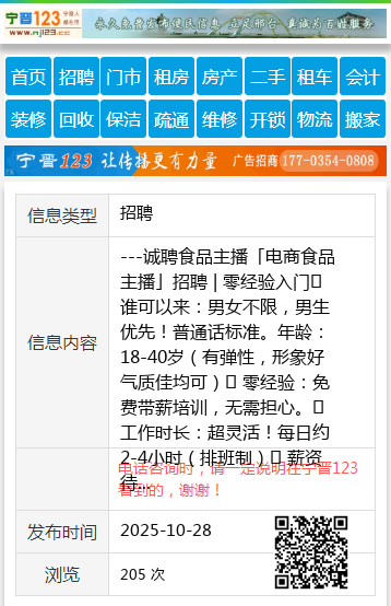 ---诚聘食品主播「电商食品主播」招聘 | 零经验入门✔ 谁可以来:男女不限,男生优先!普通话标准。年龄:18-40岁(有弹性,形象好气质佳均可)✔ 零经验:免费带薪培训,无需担心。✔ 工作时长:超灵活!每日约2-4小时(排班制)✔ 薪资待遇:2000-4000元工作内容:到工作室直播/与团队配合拍摄美食短视频。欢迎咨询!:15214651588(vx 同号)---个人15214651588 【电话咨询时,请一定说明在七台河信息网看到的,谢谢!】 |
