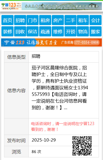 茄子河区晨隆综合医院,招聘护士,全日制中专及以上学历,具有护士执业资格证,薪酬待遇面议杨女士13945575993