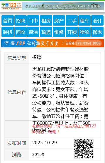 黑龙江晟斯凯特新型建材股份有限公司招聘招聘岗位:车间操作工招聘人数:30人岗位要求:男女不限,年龄25-50周岁,身体健康,有劳动能力,服从管理;薪资待遇:公司提供午餐及通勤车、缴纳五险计件工资:男工6000元/月以上,女工5000元/月以上上班时间:6:00-18:00联系方式:13846479963 王女士工作地址:七台河市茄子河区大唐电厂道口里侧4000米个人13846479963 【电话咨询时,请一定说明在七台河信息网看到的,谢谢!】 |