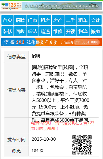 [跳跳]招聘骑手[转圈],全职骑手,兼职兼职,数名,单多事少,活好干,专人一对一培训,包教会,自带导航,精确到顾客楼下。保底收入5000以上,平均工资7000元-15000元,上不封顶。免费提供车跟装备,+各种奖励,每月完成3000单不是问题。欢迎各路大神骚扰[勾引][勾引][勾引][勾引]电话18746402070(微信同步)饿了么18746402070 【电话咨询时,请一定说明在七台河信息网看到的,谢谢!】 |